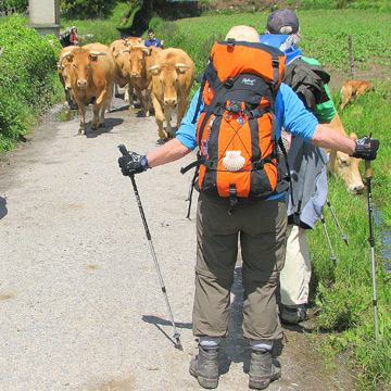 | Tierische Begegnung auf dem Jakobsweg durch Galicien, Spanien |